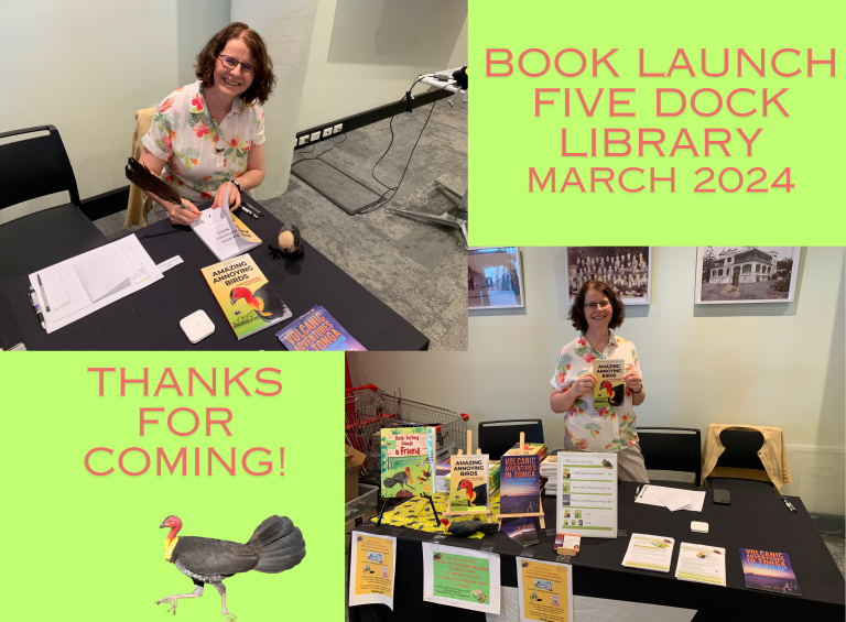 The book launch for “Amazing Annoying Birds – Living with Australian brush-turkeys” was held on February 8th 2024 at Five Dock Library, Sydney.